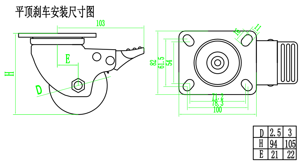 3寸低重心萬向帶刹車腳輪