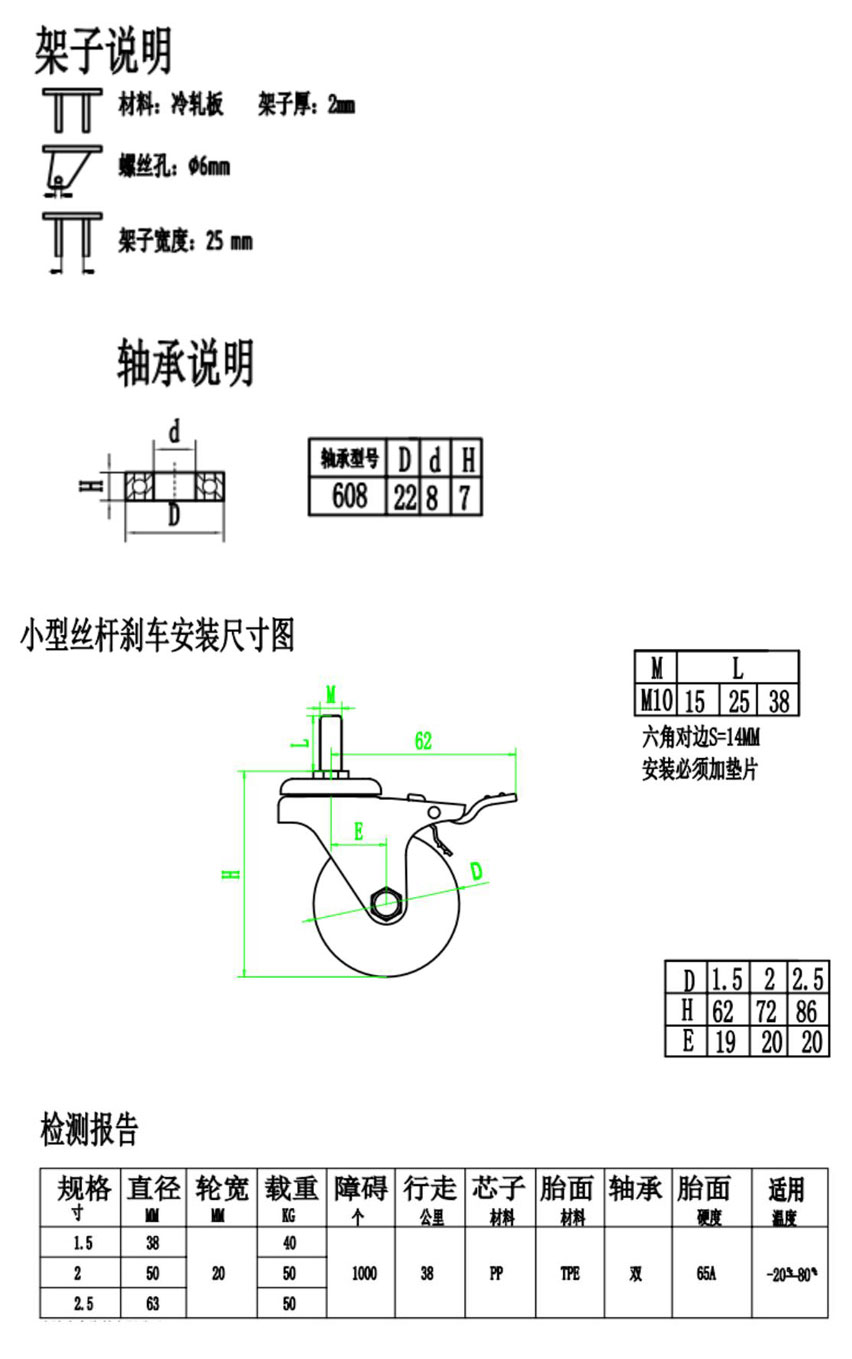 小型2寸絲杆無軸承萬(wàn)向刹車腳輪