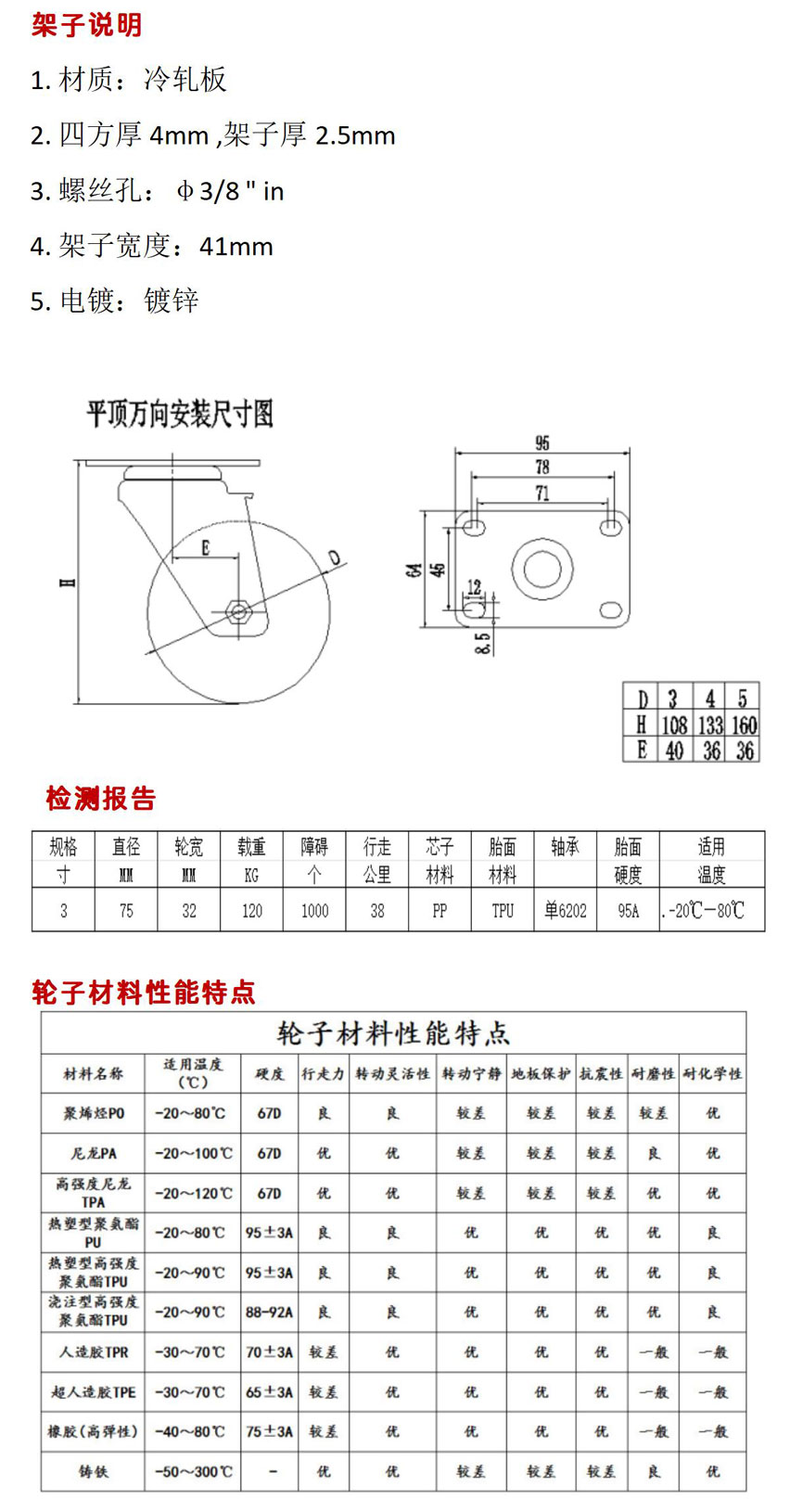 中(zhōng)型3寸萬向(xiàng)帶刹車單軸(zhóu)承腳輪