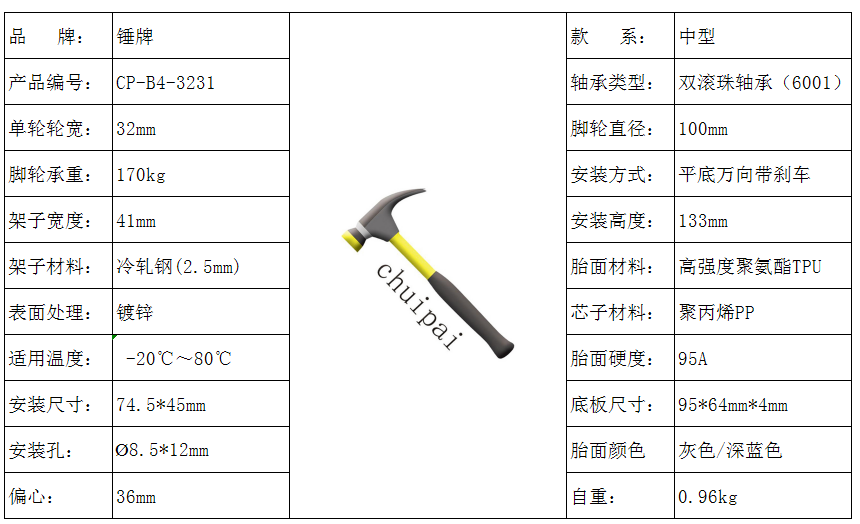 中型4寸萬向(xiàng)腳(jiǎo)輪