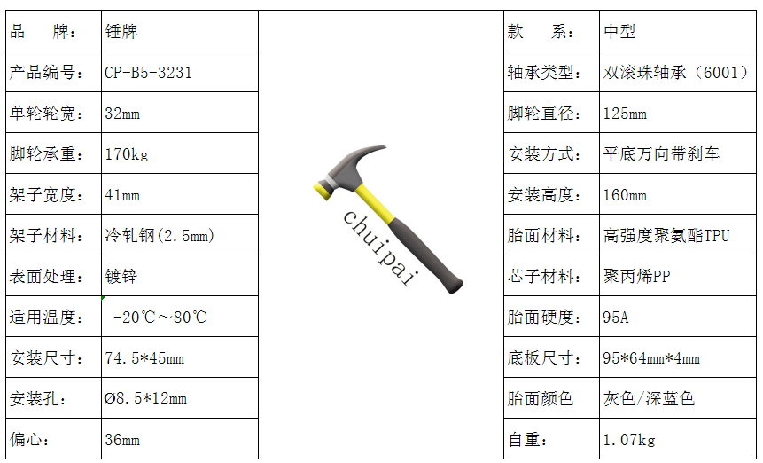 中型5寸萬向帶刹車腳(jiǎo)輪