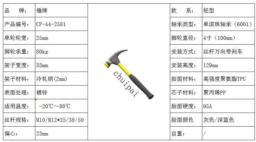 4寸輕型絲杆TPU萬向帶刹車腳輪(lún)產(chǎn)品詳情